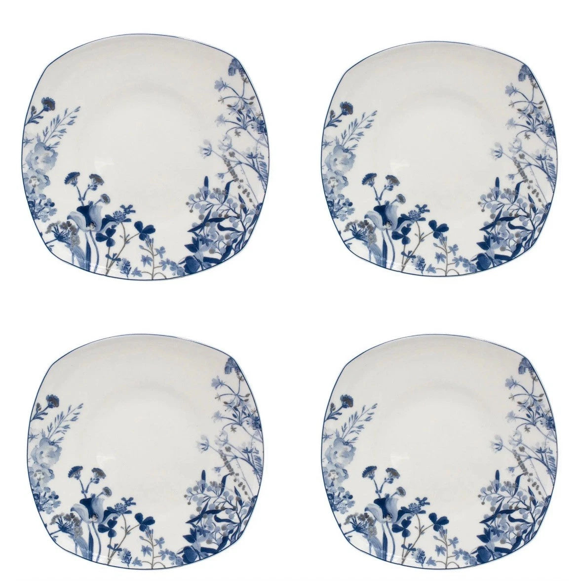 NEW Mikasa Wildflower Blue Set of 4 Dinner Plates 10" Lightweight Bone China